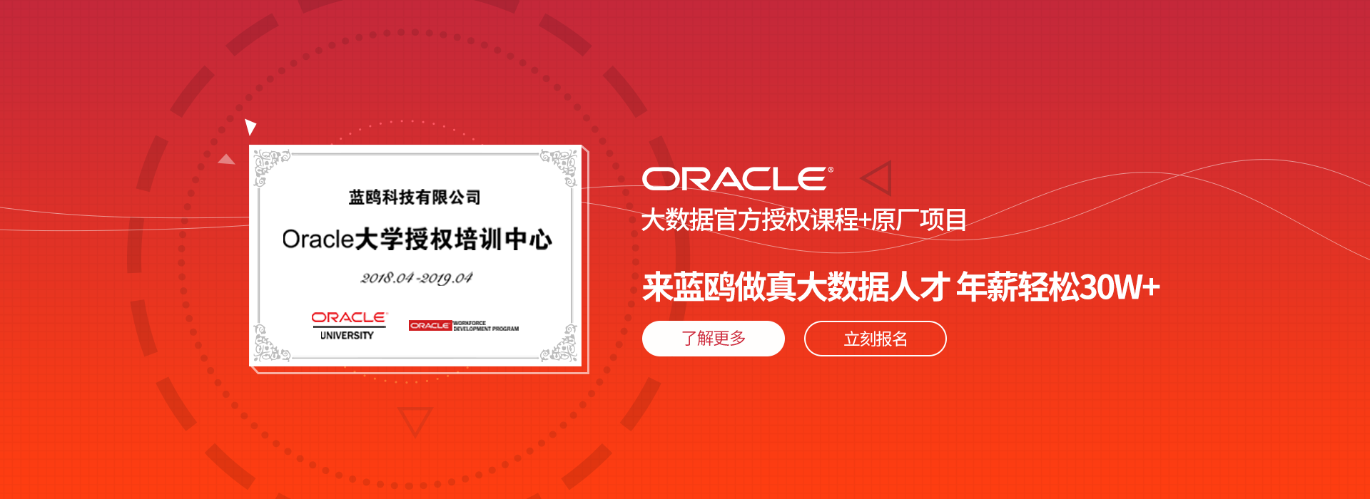 藍鷗大數(shù)據(jù)課程已經(jīng)過市場檢驗,育人成績顯著。目前獲得Oracle大數(shù)據(jù)授權,大批Oracle原廠項目將隨官方技術一同引進,更有Oracle高級技術顧問參與授課